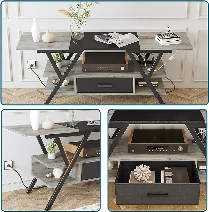About This ❤【TV Stand Table with Power Station】Yusong entertainment center features 4 standard plug outlets 2 USB ports and power...