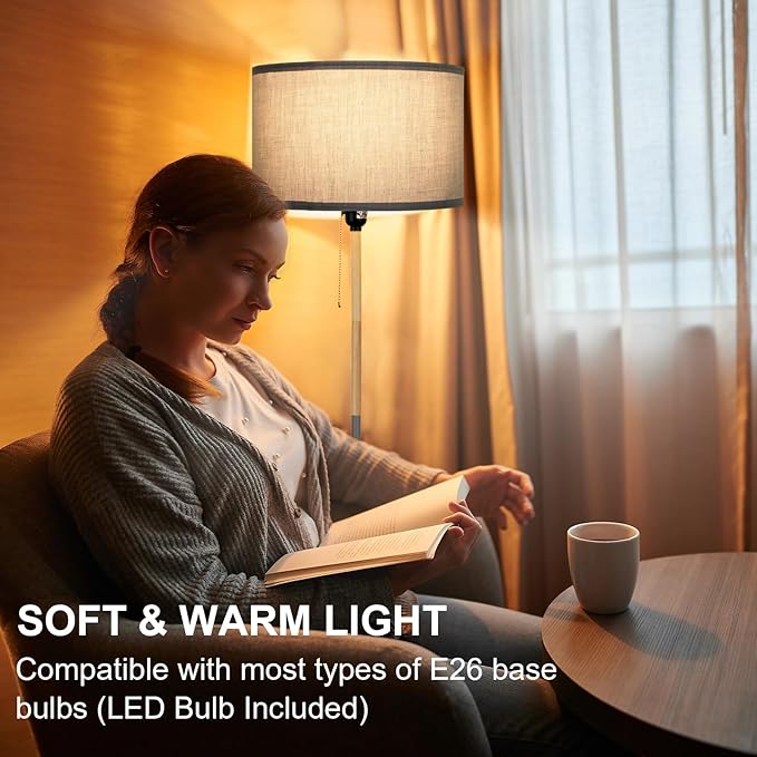 About This 【Modern Floor Lamp with Pull Chain Switch】 This floor lamp comes with an easy-reach pull chain switch, allowing...