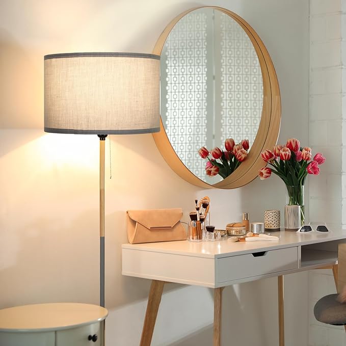 Modern Floor Lamp for Living Room Traditional Farmhouse Floor Lamps Mid-Century Pole Lamp with Linen Lamp Shade, Standing Tall Floor Lamps for Bedrooms and Office (Grey)