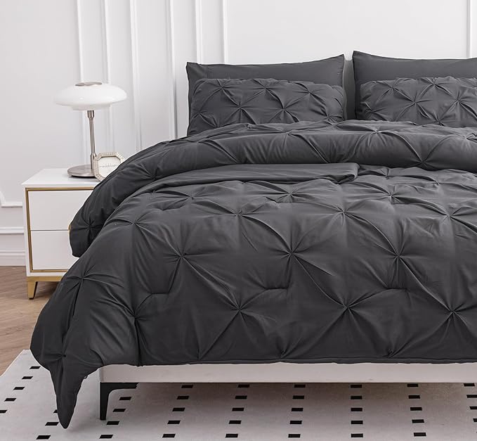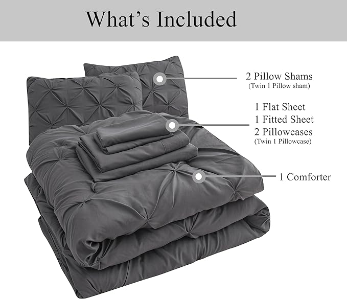 LANE LINEN Queen Size Comforter Set, 7 Piece Bedding Queen Size, Pintuck Comforters Queen Size Bed Set, Soft Queen Bed in a Bag Set, Queen Bed Comforter Set with Sheets, Pillowcases & Shams - Grey