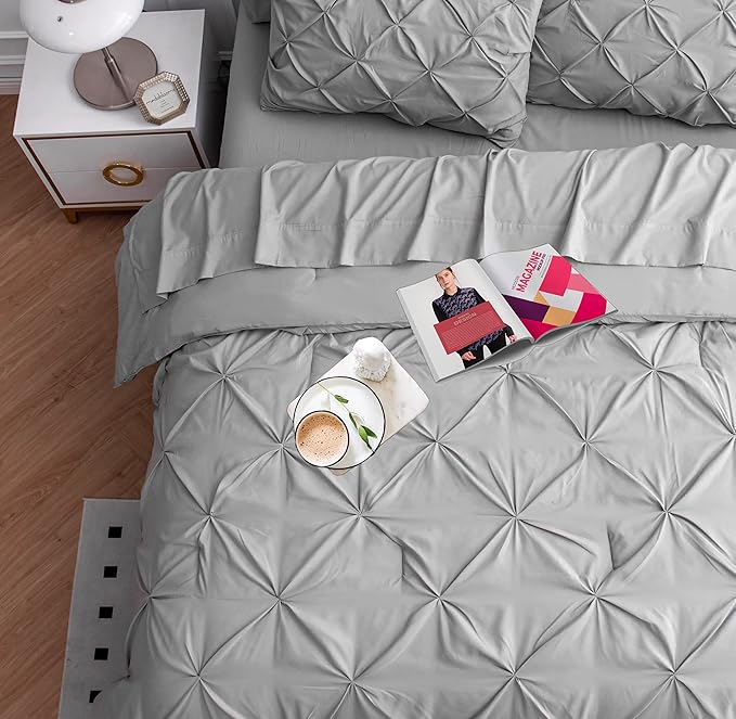 Lane Linen King Comforter Set, King Size Comforter Set 7 Pieces, Bed in a Bag King Size, Pintuck King Size Bedding Sets, King Bed Set, King Size Comforter Set with Sheets, Pillowcases & Shams - Silver
