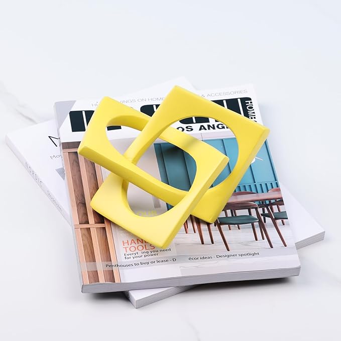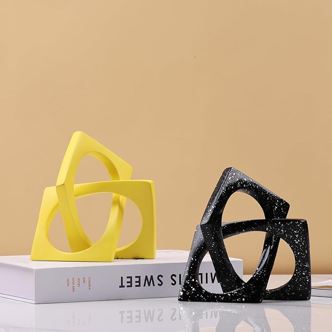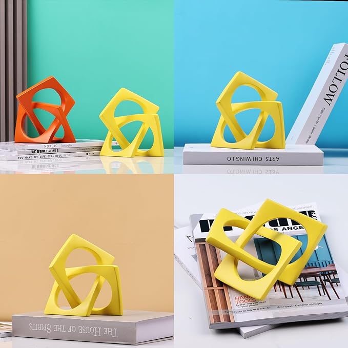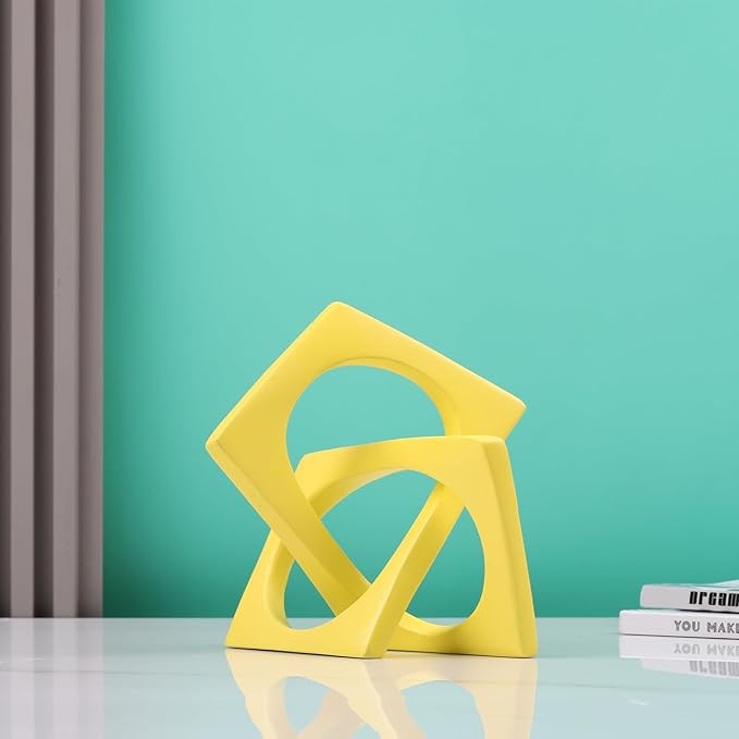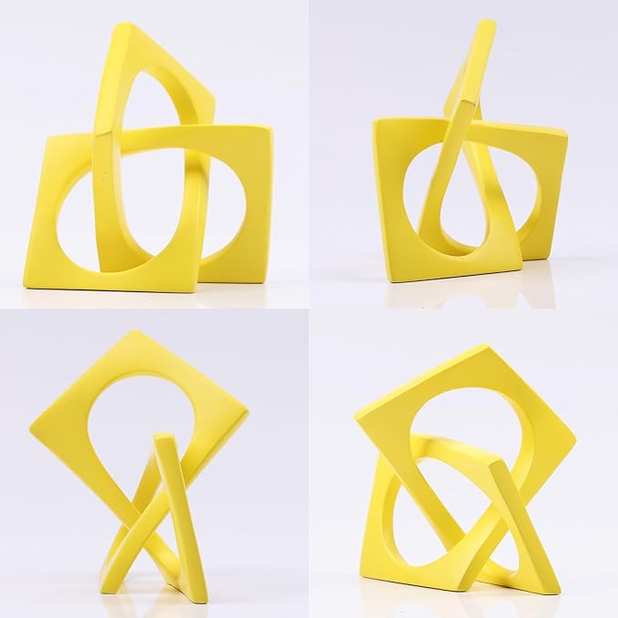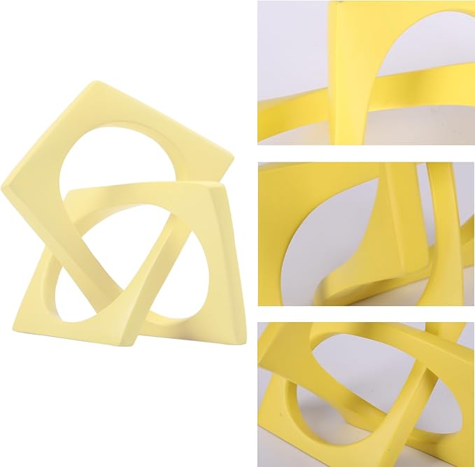 DOVDOV Geometric cube knot decorations, abstract geometric statue, yellow home decor accents for room office shelf coffee table entryway desktop small ornaments.