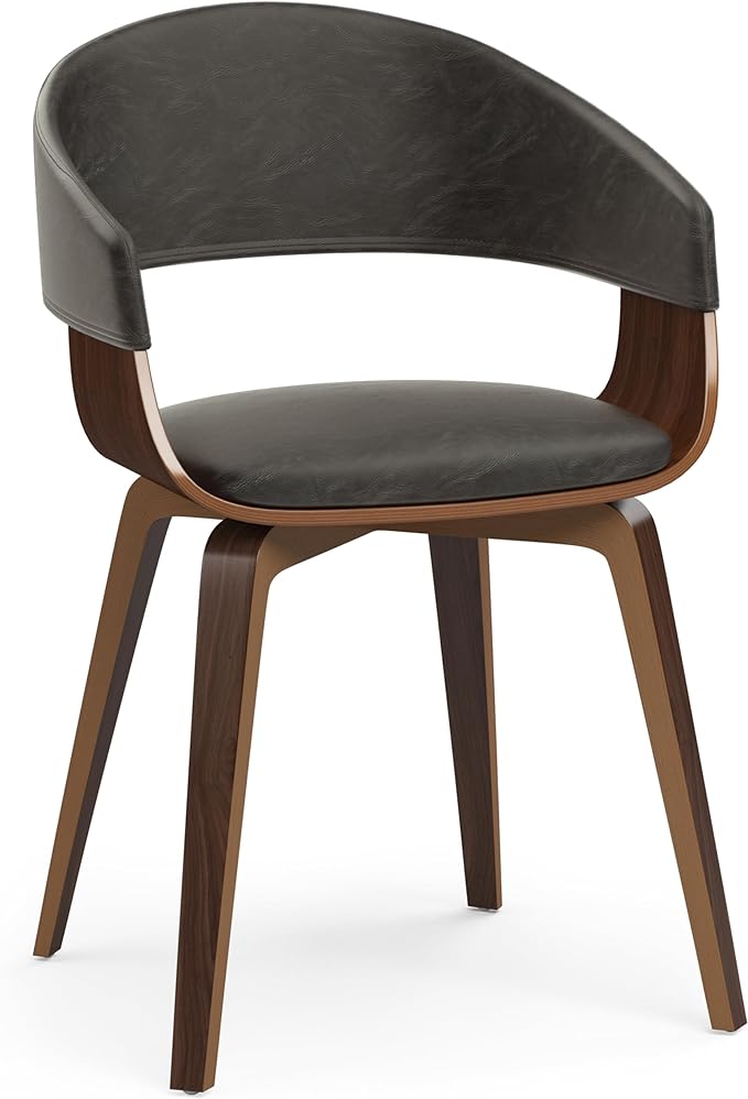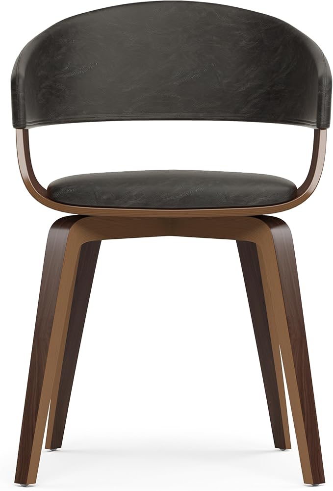 SIMPLIHOME Lowell 17 Inch Mid Century Modern Bentwood Dining Chair in Distressed Brown Vegan Faux Leather, for The Dining Room