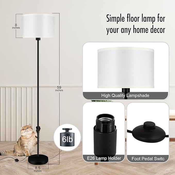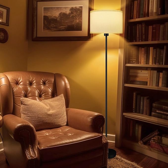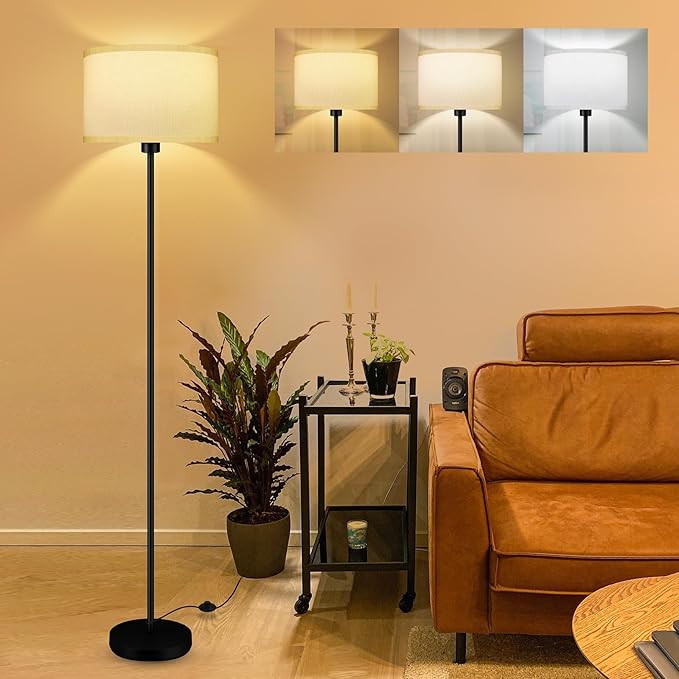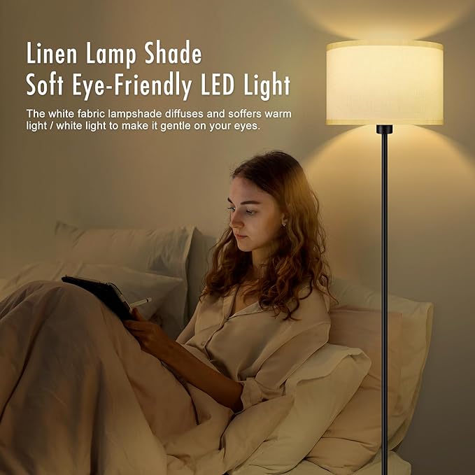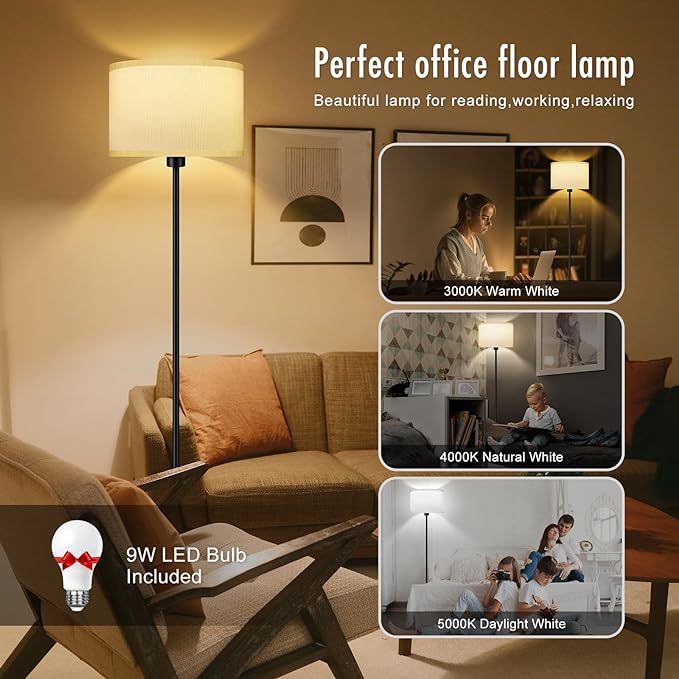 Floor Lamps for Living Room, Modern Standing Lamp with 3 Color Temperatures(9W Bulb), White Linen Lampshade, Foot Switch, Simple Reading Floor Lamps Tall Lamps for Bedroom/Office/Nightstand/Classroom