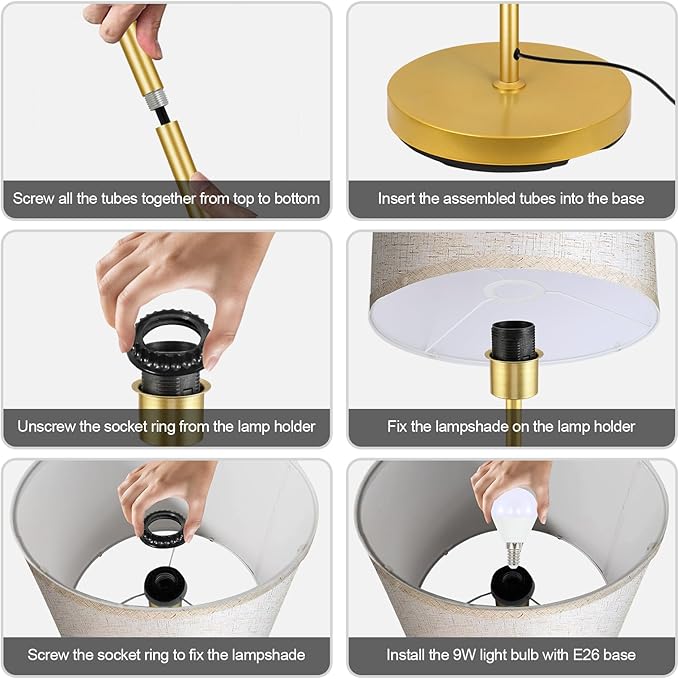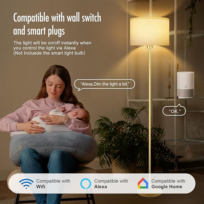 About This 💡Beige Lampshade LED Floor Lamp Standing Lamp - This standing floor lamp gold is crafted from high-grade metal...