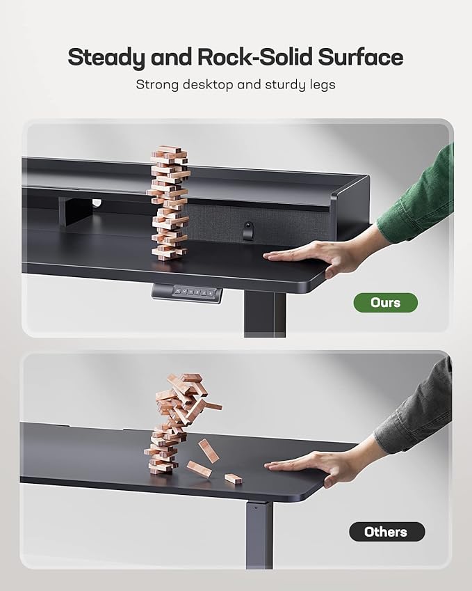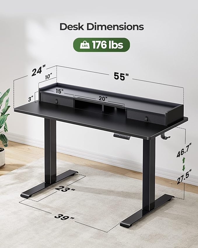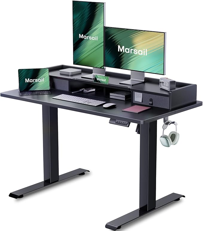 Marsail Electric Standing Desk with Double Drawers, 55x24 Inches Height Adjustable Desk with Storage Shelf,Sit Stand Desk with 4 Memory Preset,2 Hooks, Stand Up Desk for Home Office,Black