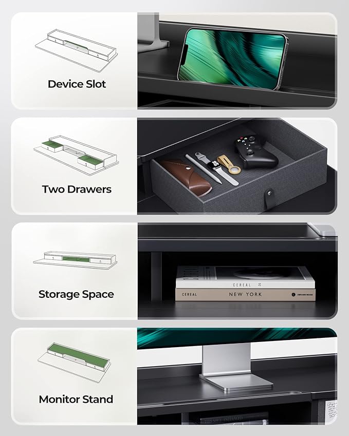 About This 𝑬𝒙𝒑𝒍𝒐𝒓𝒆 𝒂𝒏 𝑬𝒓𝒈𝒐𝒏𝒐𝒎𝒊𝒄 𝑺𝒕𝒂𝒏𝒅𝒊𝒏𝒈 𝑫𝒆𝒔𝒌 𝒘𝒊𝒕𝒉 𝑺𝒕𝒐𝒓𝒂𝒈𝒆: Adjustable Standing desk with a monitor stand, can raise your monitor...