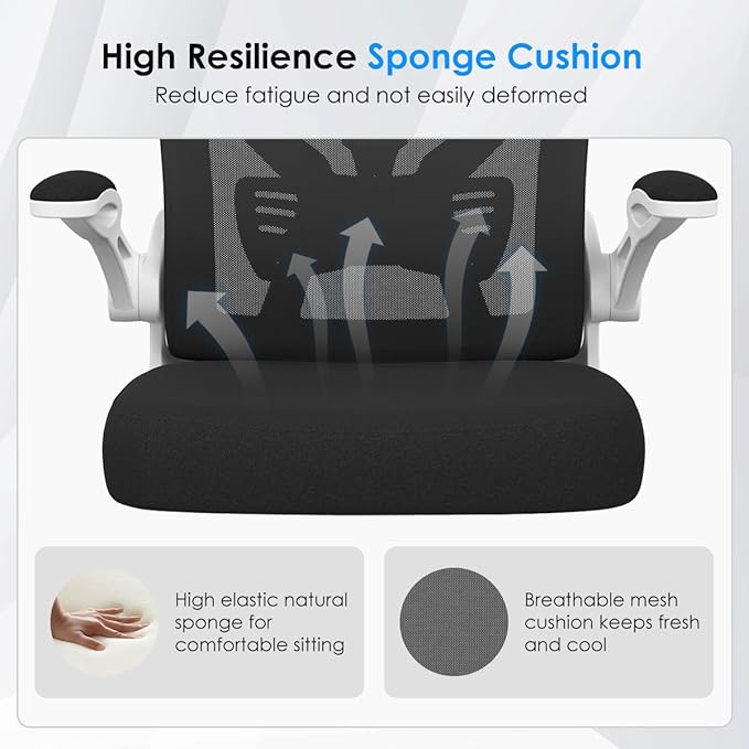 Office Desk Chair, Ergonomic Desk chair with Wheels, High Back Home Office Chair, Mesh Computer chair with Filp-up Armrests for Study room Bedroom, White
