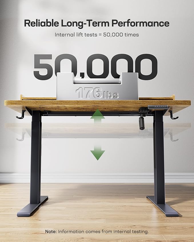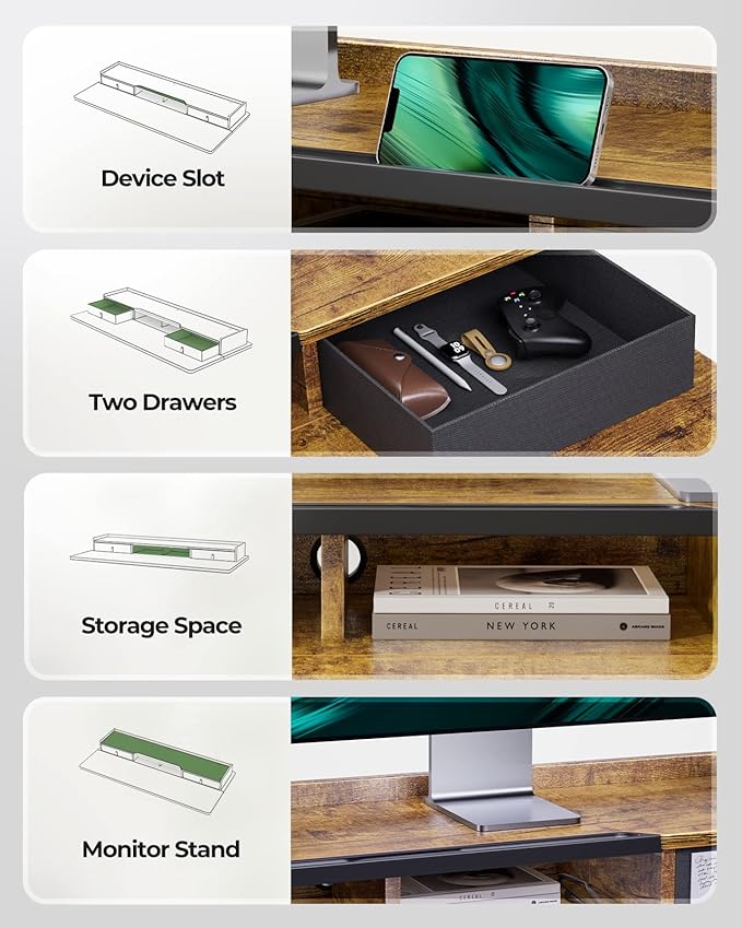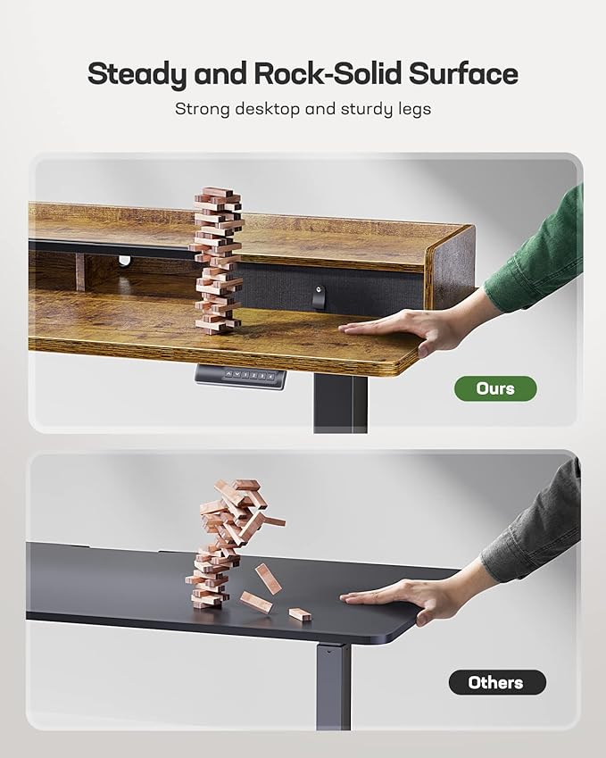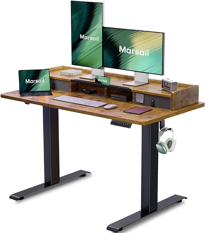 Marsail Electric Standing Desk with Dual Drawers, 48 x 24 Inches Height Adjustable Desk with Storage Shelf, Sit Stand Desk with 4 Memory Preset, 2 Hooks, Stand Up Desk for Home Office, Vintage