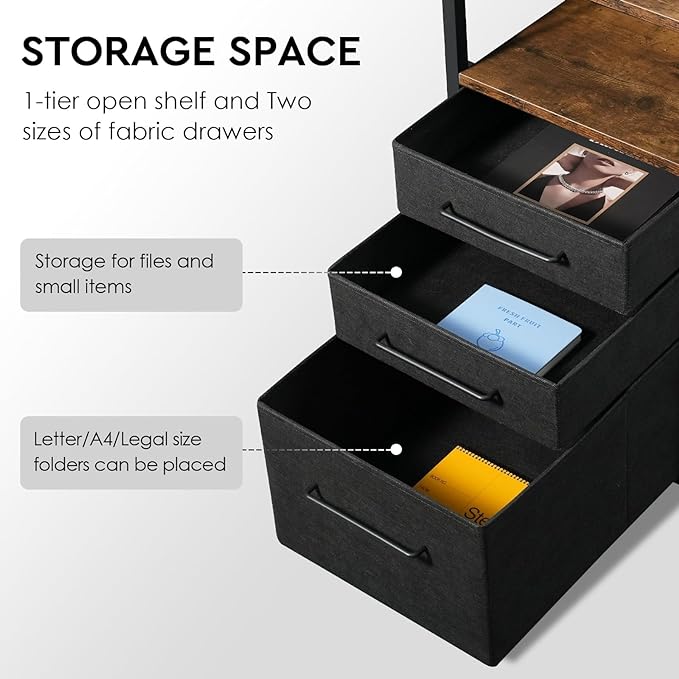 Computer Desk with Drawers, 47 Inch Desk with 2 Drawers and Shelves, Office Desk with Storage, Desk with Storage Bag, Home Office desks with Drawers, Metal Frame for PC Laptop, Rustic Brown