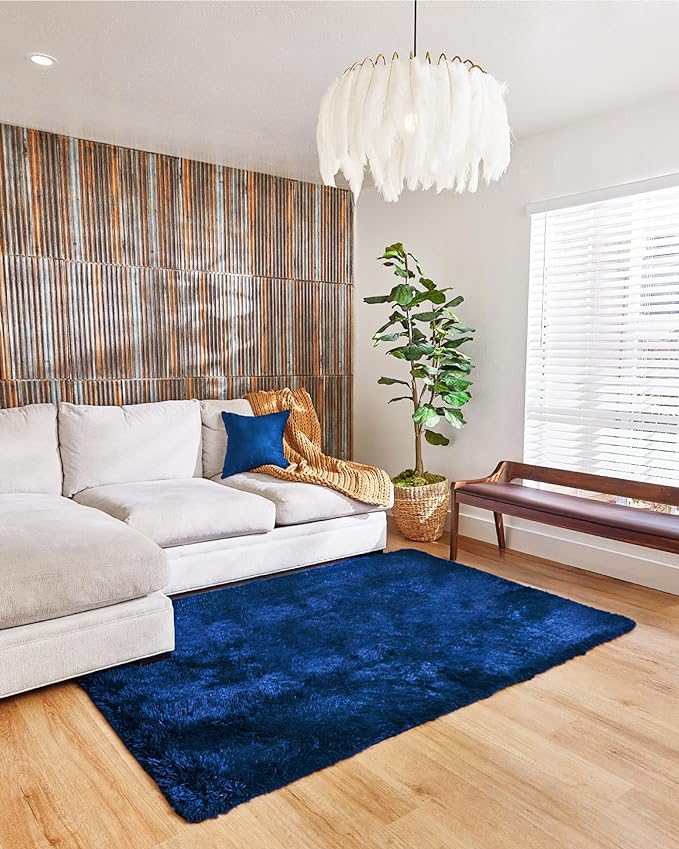 Ophanie Machine Washable 5x8 Blue Rugs for Living Room, Large Navy Fluffy Fuzzy Plush Shag Comfy Soft,Non-Slip Indoor Floor Carpet, Kids Boys Girls,Room,Bedroom,Playroom, Home Decor Aesthetic, Nursery