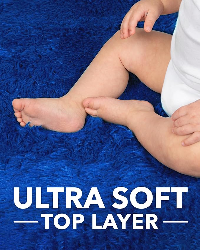 Ophanie Machine Washable 6x9 Rugs for Living Room, Blue, Large Fluffy Carpet, Fuzzy Plush Navy Shag Comfy Soft, Non-Slip Indoor Floor,for Kids Boys Girls Dorm, bedroom, Playroom, Home Decor Aesthetic
