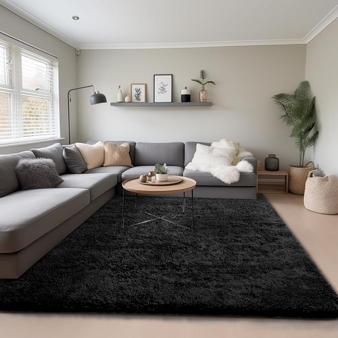 Ophanie Machine Washable 6 x 9 Rugs for Living Room,Black,Large Fluffy Fuzzy Plush Shag Comfy Soft,Non-Slip Indoor Floor Carpet,for Kids Boys Girls Dorm,Room,Bedroom,Playroom,Home Decor Aesthetic
