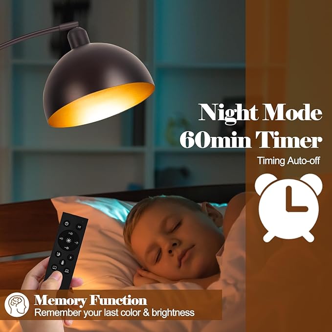About This ❤️🔥【Dimmable Adaptable Arc Floor Lamps】Our dimmable arch floor lamp, integrated with a remote control for effortless stepless adjustment...