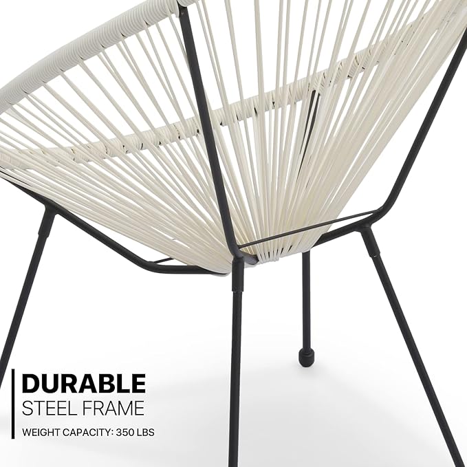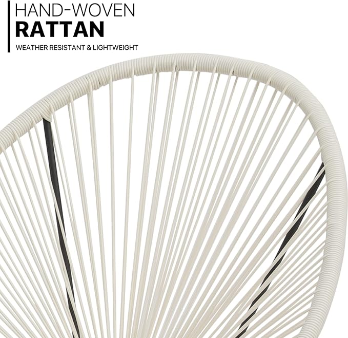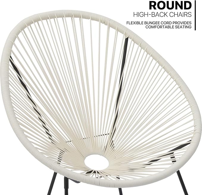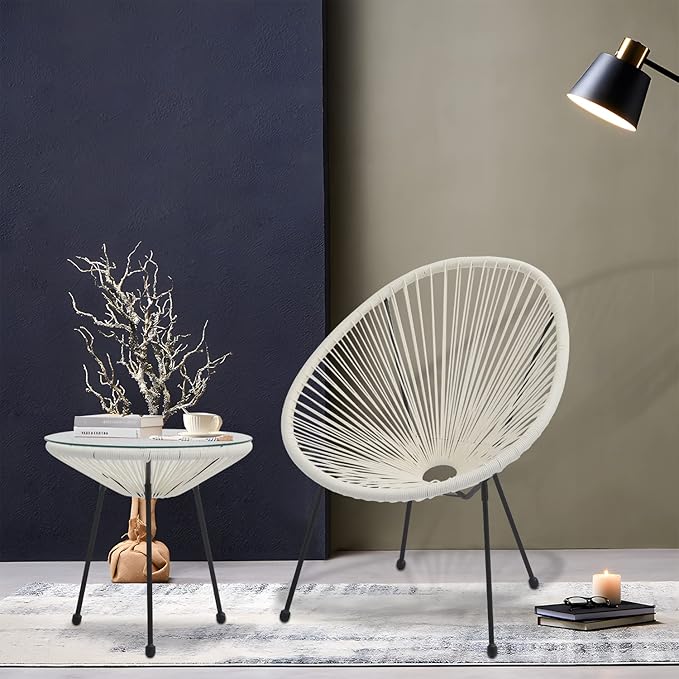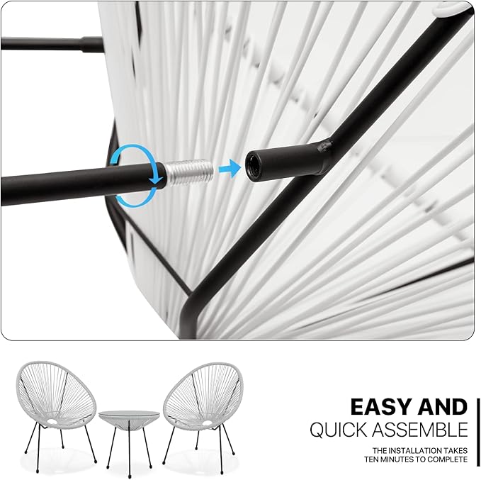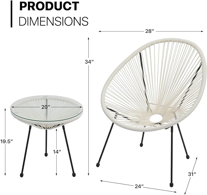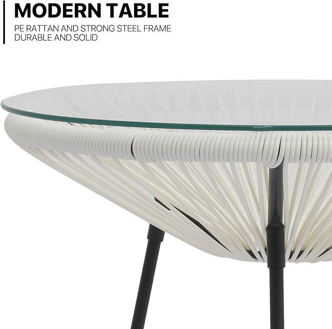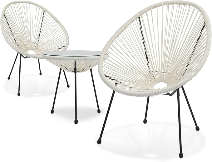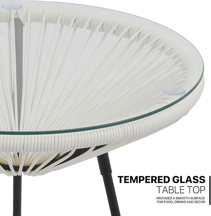 MoNiBloom 3 Piece Outdoor Acapulco Set All-Weather Patio Balcony Conversation Bistro Outside Set with Glass Top Table and 2 Chairs for Indoor Patio Lawn Garden, Weight Capacity 250 lbs, White