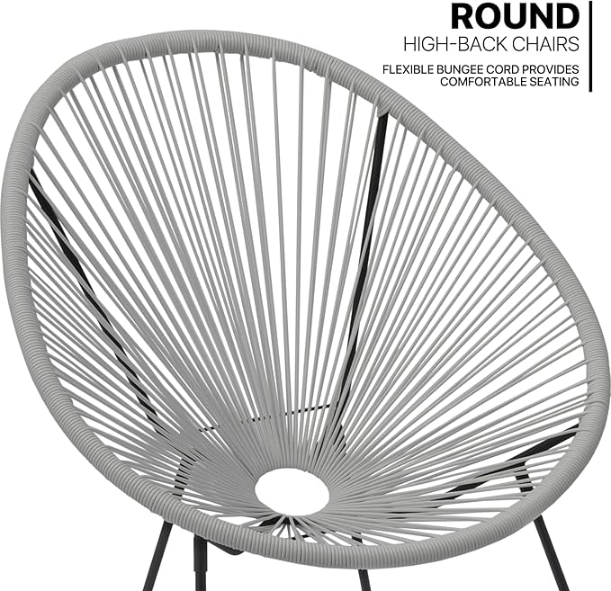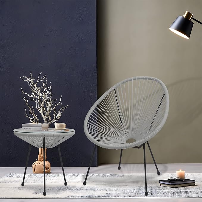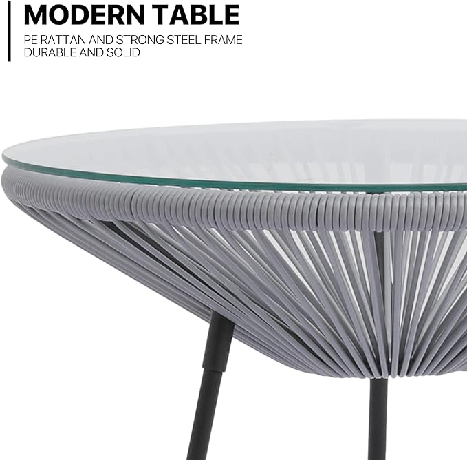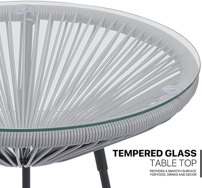 MoNiBloom 3 Piece Outdoor Seating Acapulco Chair, Modern Patio Furniture Outdoor Conversation Set, Glass Top Table and 2 Metal Steel Chairs for Garden Poolside Balcony, Weight Capacity 250 lbs, Grey