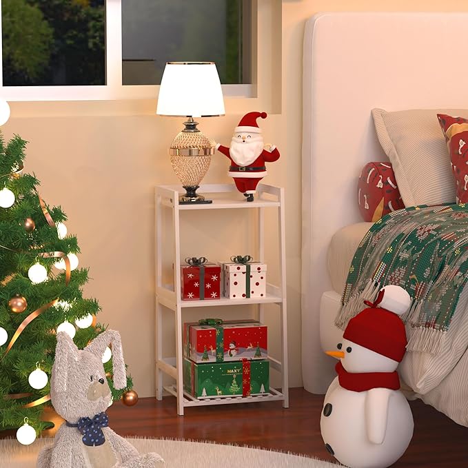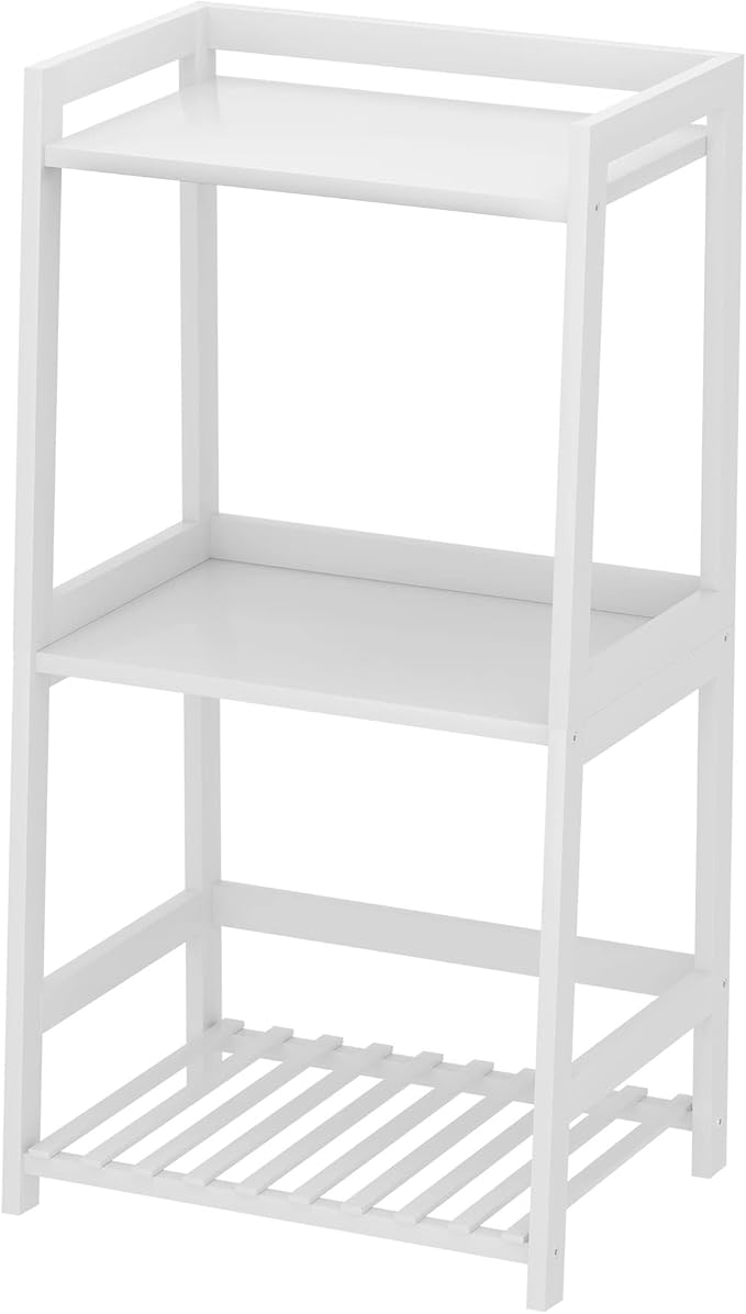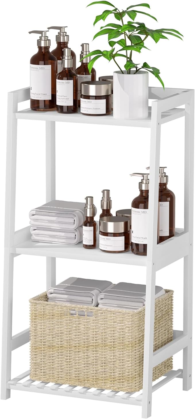 Bathroom Shelves, 3 Tier Ladder Shelf Bamboo Nightstand Open Shelving, Bookshelf Bookcase End Table Plant Stand for Living Room, Bedroom, Bathroom, Kitchen, Balcony