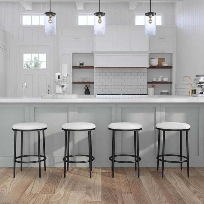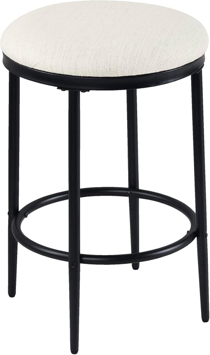 HomePop Upholstered Metal Barstool, Fabric Side Chairs for Dining Room, Kitchen and Living Room - Stain-Resistant Cream Woven