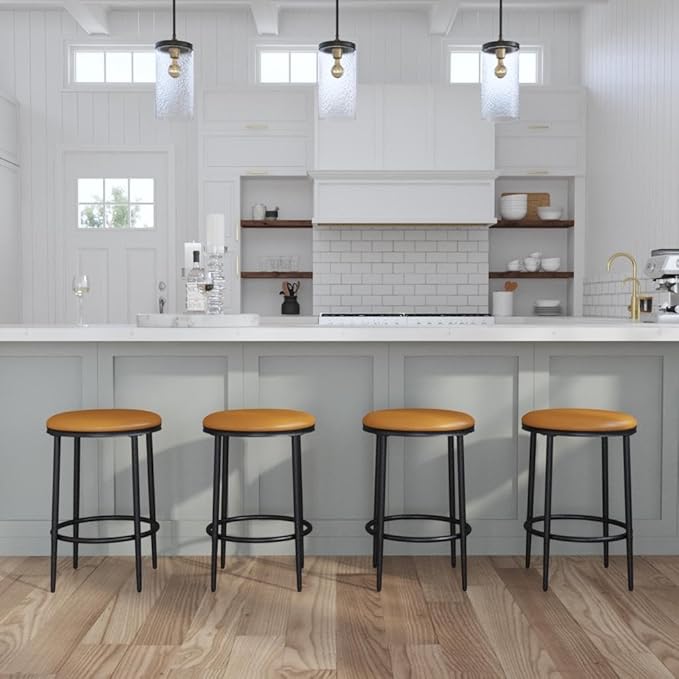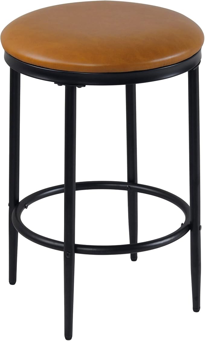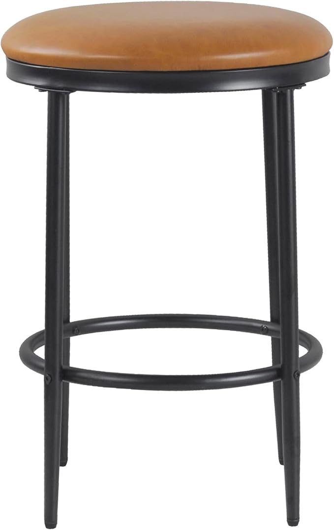 HomePop Upholstered Metal Barstool, Fabric Side Chairs for Dining Room, Kitchen and Living Room - Carmel Brown Faux Leather
