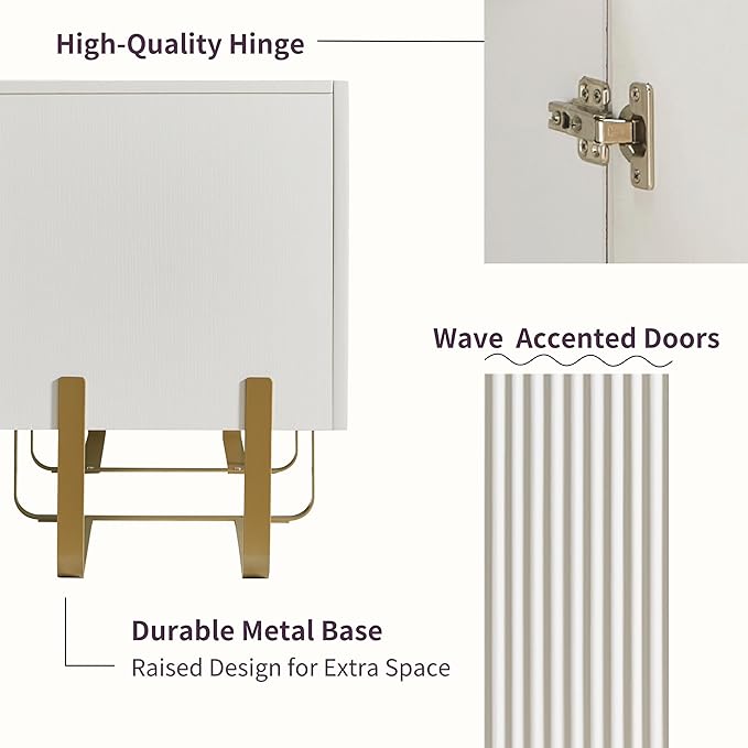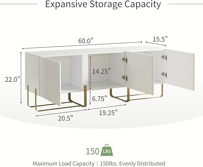 24/7 Shop at Home Mignon Contemporary Modern Style 60" TV Stand with 3 Storage Cabinets, Fits 65 Inches, Entertainment Center Console for Family, Living Room & Bedroom, Metal Legs, White