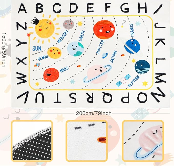 Soft ABC Kids Rug,59x78 in Washable Large Classroom Rug,Non-Slip Educational Nursery Rug,Solar System Kids Room Rug for Classroom Playroom Bedroom Kids Room Decor