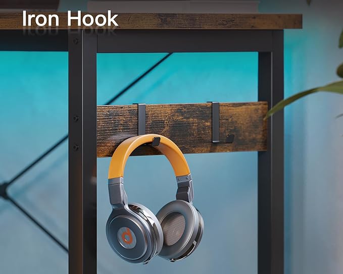 Coleshome 59" L Shaped Gaming Desk with Outlet, L Shaped Desk with CPU Stand, Corner Computer Desk, Home Office Desk, Writing Desk, Vintage
