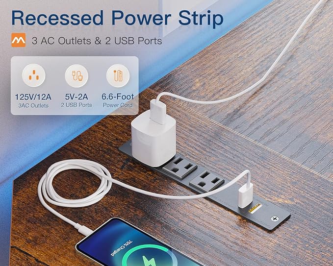 About This 【USB Charging Ports & Power Outlets】: The l shaped computer desk features 3 standard plug outlets and 2...