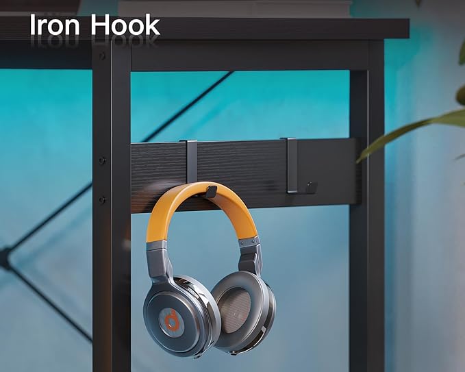 Coleshome 59" L Shaped Gaming Desk with Outlet, L Shaped Desk with CPU Stand, Corner Computer Desk, Home Office Desk, Writing Desk, Black