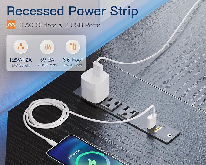 About This 【USB Charging Ports & Power Outlets】: The l shaped computer desk features 3 standard plug outlets and 2...