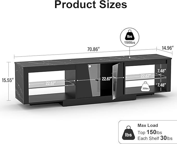 About This 【4-in-1 Multifunctional LED TV Cabinet】This is not only a 70-inch TV cabinet, but also an adjustable cabinet. It...