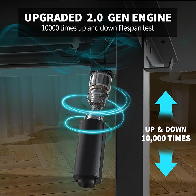 • ✨Excellent Cable Management & Hooks Design: Specially optimized the cable management of mobile electric standing desks. Enough adhesive straps for fixing the wire. Hooks on both sides of the adjustable standing desk are designed for Backpacks, headphones, or storage bags. DC motor can hold up to 180 lbs.