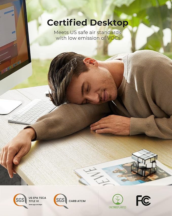 Standing Desk Adjustable Height, Electric Standing Desk with Starage Bag, Stand up Desk for Home Office Computer Desk Memory Preset with Headphone Hook, 48x24 Inch, Maple