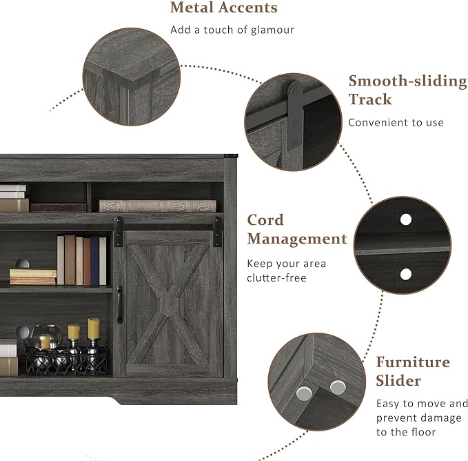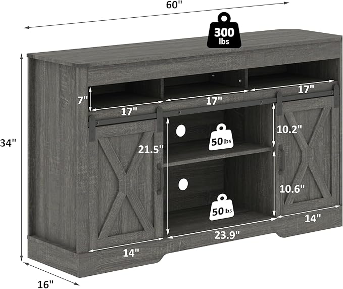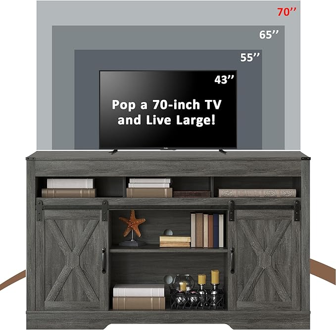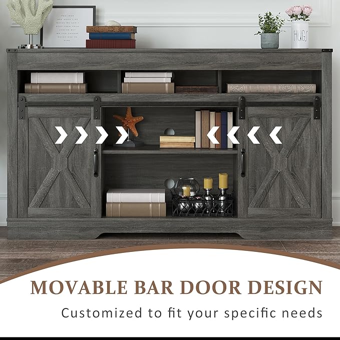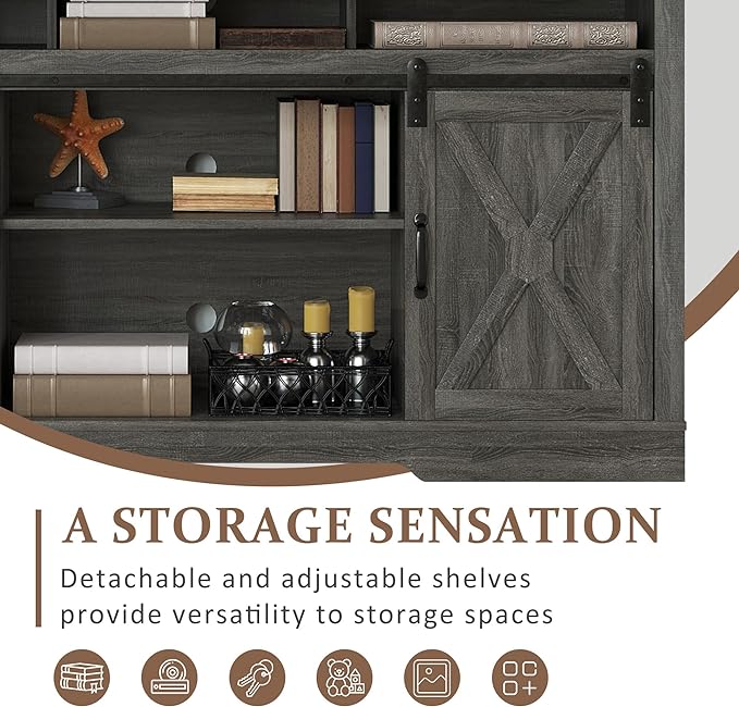 farmhouse 65+ Inch TV Stand, Tall Entertainment Center for Living Room, Bedroom, Dark Grey