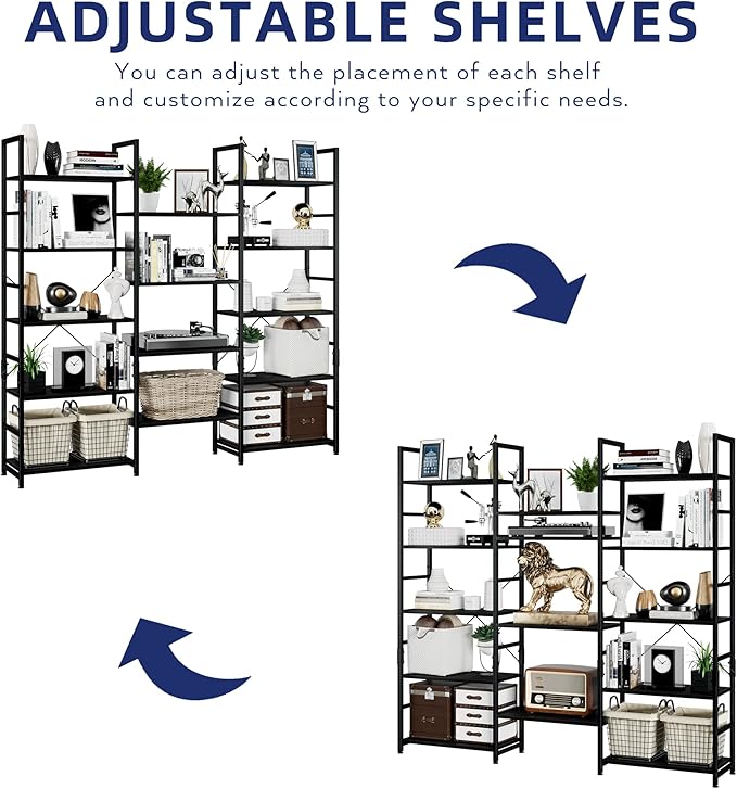 About This ✅【TRIPLE WIDE MULTIFUNCTIONAL BOOKSHELF】A wide bookshelf in style. It has 14 open shelves in total for a huge...