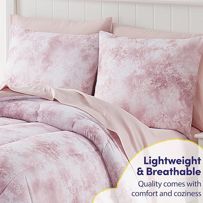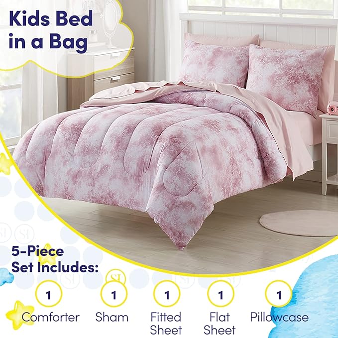 Kids Bedding Set Bed in a Bag for Boys and Girls Toddlers Printed Sheet Set and Comforter, Twin, Waterbury Marble (Pack of 4)