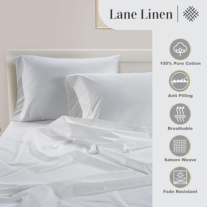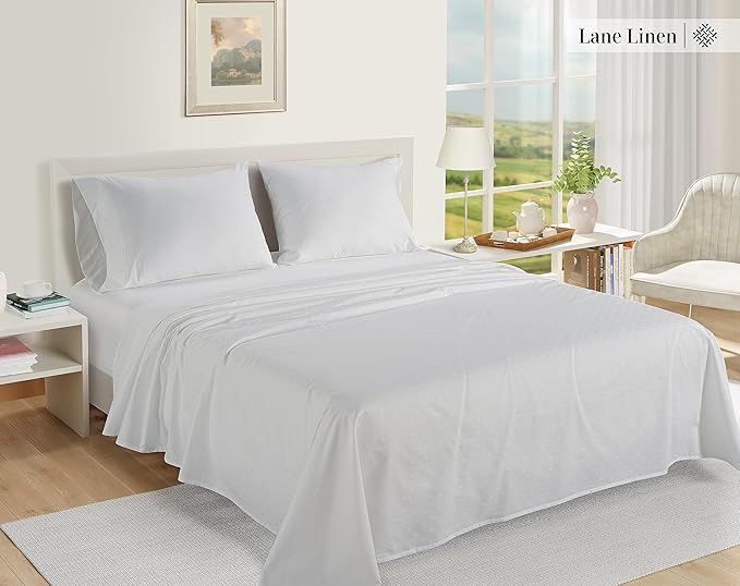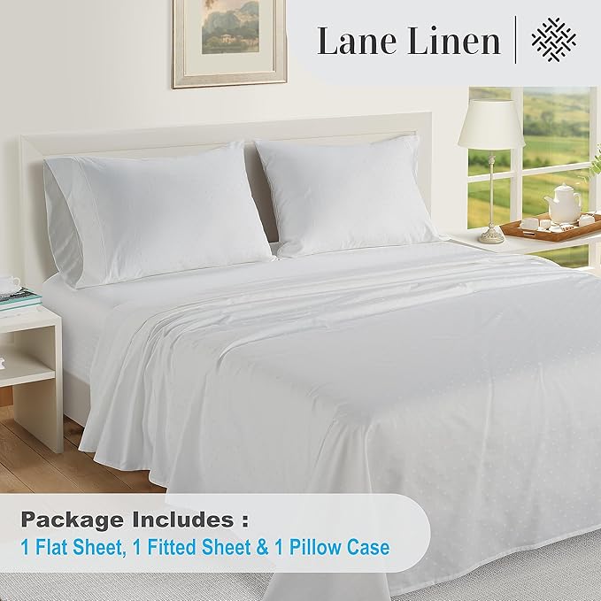 LANE LINEN 100% Egyptian Cotton Bed Sheets - 1000 Thread Count 3PC Twin XL Sheets Set, Bedding Sheets, Sateen Weave, Luxury Hotel Sheets, Fits Upto 16" Mattress, Swiss Dot - White