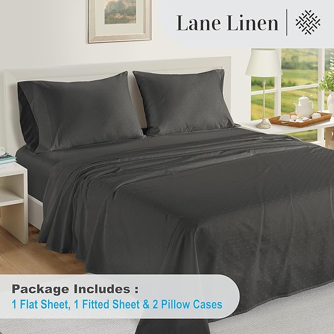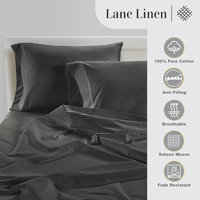 LANE LINEN 100% Egyptian Cotton Bed Sheets - 1000 Thread Count 4PC King Sheets Set, Long Staple Bedding Sheets, Sateen Weave, Luxury Hotel Sheets, Fits Upto 16" Mattress, Swiss Dot - Charcoal