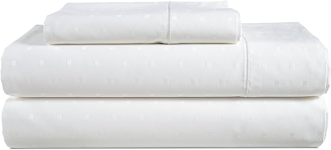 LANE LINEN 100% Egyptian Cotton Bed Sheets - 1000 Thread Count 3PC Twin Sheets Set, Long Staple Cotton Bedding Sheets, Sateen Weave, Luxury Hotel Sheets, Fits Upto 16" Mattress, Swiss Dot - White