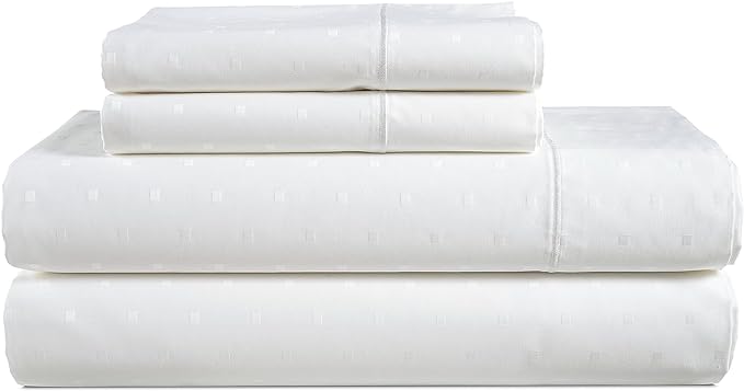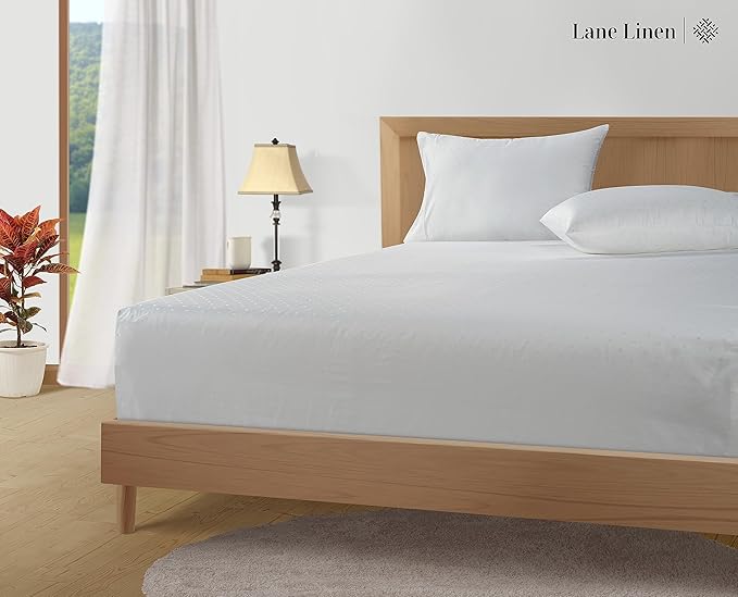 LANE LINEN 100% Egyptian Cotton Bed Sheets - 1000 Thread Count 4PC Calking Sheets Set, Long Staple Cotton Bedding Sheets, Luxury Hotel Sheets, Fits Upto 16" Mattress, Swiss Dot - White