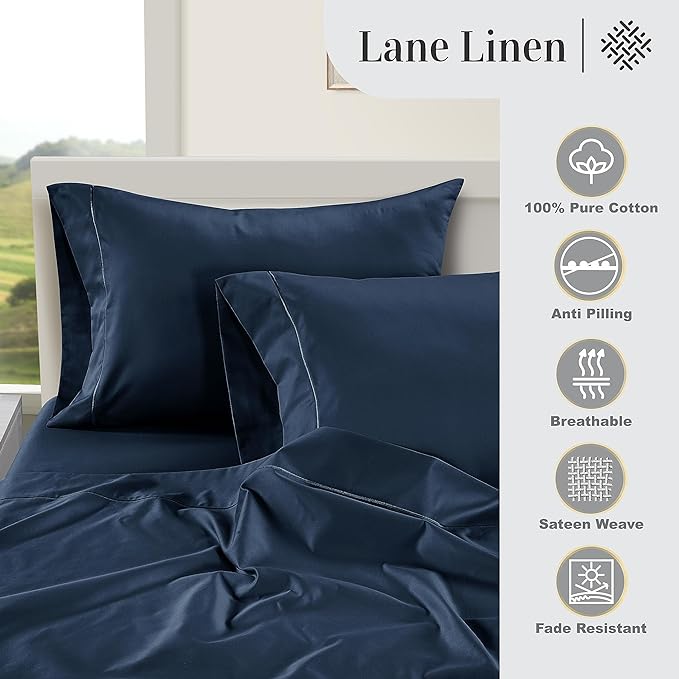 LANE LINEN 100% Egyptian Cotton Bed Sheets - 1000 Thread Count 4-Piece Calking Sheets Set, Long Staple Cotton Bedding Sheets, Sateen Weave, Luxury Hotel Sheets, Fits Upto 16" Mattress - Estate Blue