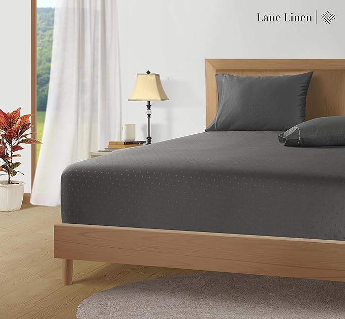 LANE LINEN Luxury 100% Egyptian Cotton Bed Sheets - 1000 Thread Count 4PC Full Sheets Set, Long Staple Cotton Bedding Sheets, Sateen Weave, Hotel Sheets, Fits Upto 16" Mattress, Swiss Dot - Charcoal