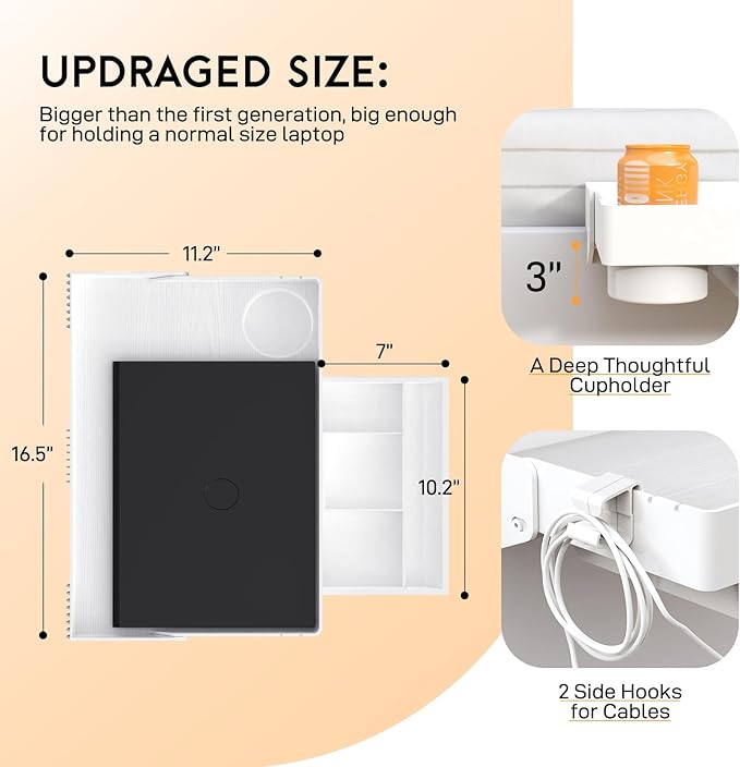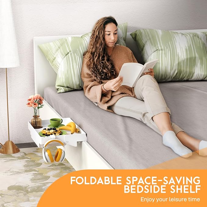 SPACELEAD Bedside Shelf for Bed – College Dorm Room Clip On Nightstand with Cup Holder & Cord Holder&drawer – Bunk Bed Shelf for Organizer Top for Bedroom (White,Plastic)