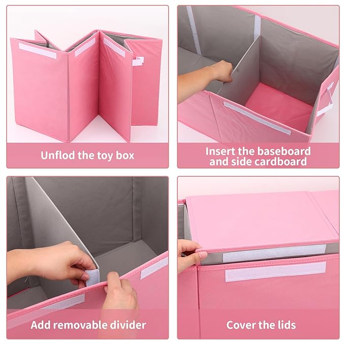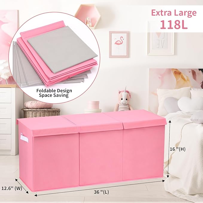 Fixwal Toy Storage Organizer for Girls - Extra Large Toddler Toy Box Kids Toy Chest, Collapsible Removable Divider for Nursery Playroom Bedroom Closet, 36"x12.6"x16" (Pink)