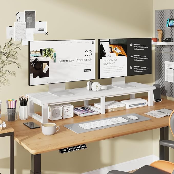 45" Large TV Riser for 32-60 inch TV, TV Riser Stand Shelf with Steel Legs, Tabletop TV Stand Riser for Home Office,White