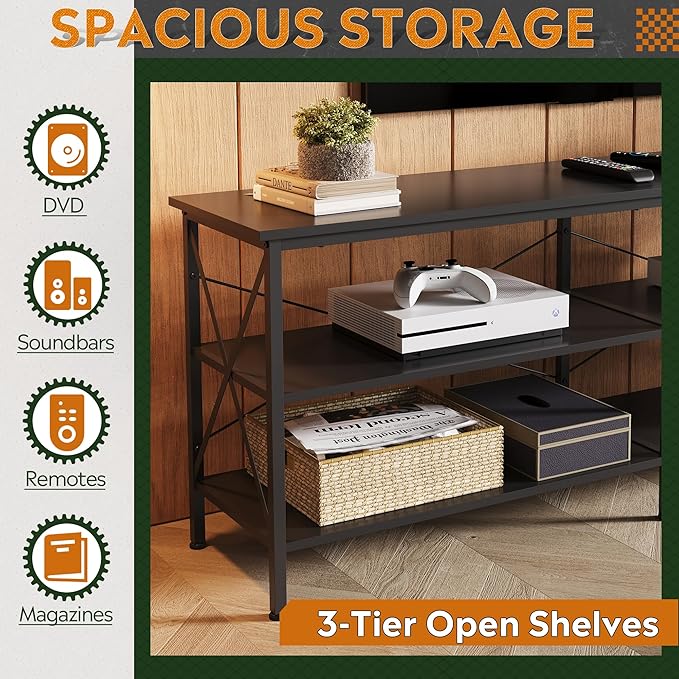 WLIVE TV Stand up to 70 Inch TV, 63" Entertainment Center, TV Media Console with 3-Tier Storage Shelves for Living Room and Bedroom, Black