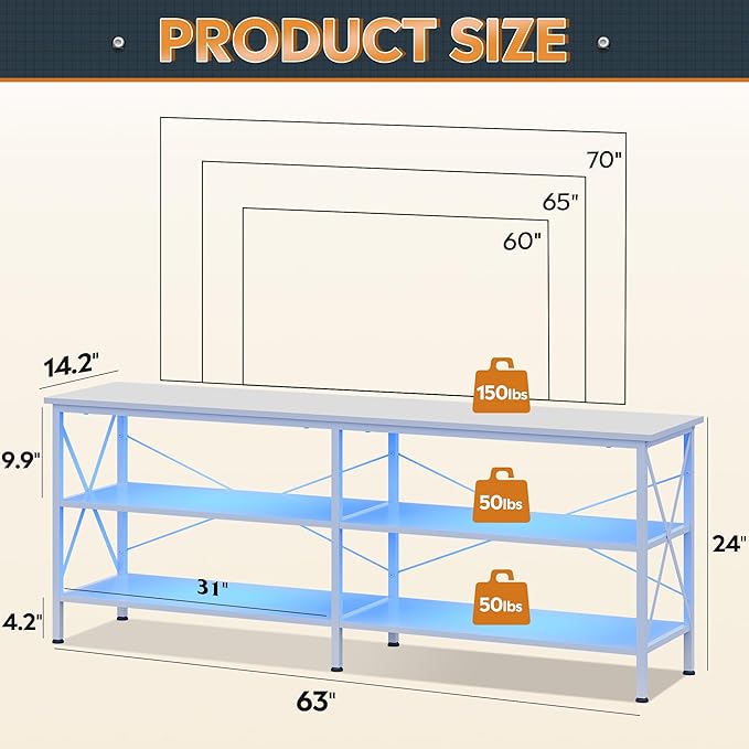 About This 【Product Dimension】The dimensions of this TV stand is 63" W x 14.2" D x 24" H. Its tabletop...