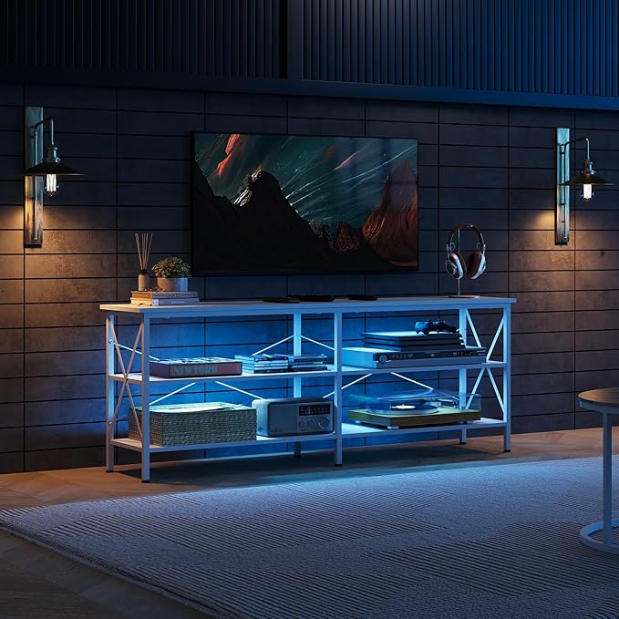 WLIVE TV Stand up to 70 Inch TV, 63" Entertainment Center with LED, TV Media Console with 3-Tier Storage Shelves for Living Room and Bedroom, White