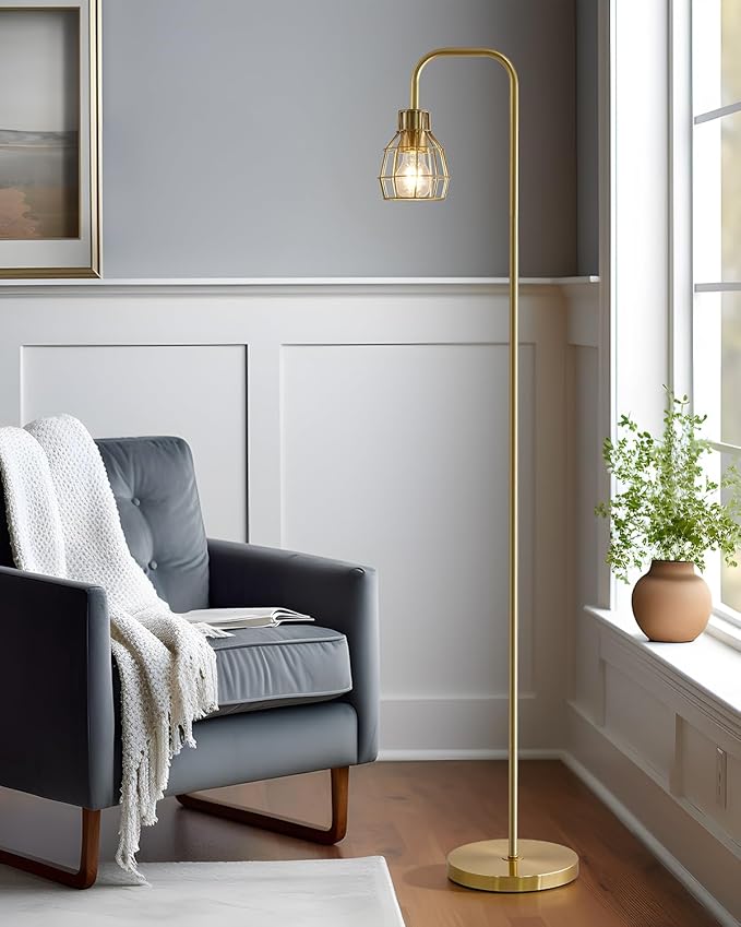 Oneach 63.75" Modern Floor Lamp for Living Room Industrial Floor Lamp with 4W LED Bulb Standing Lamp with Footswitch Gold Floor Lamp for Bedroom Pole Lamp for Office Study Room Hotel