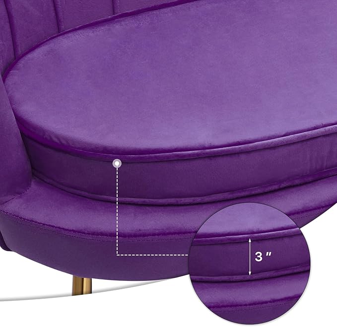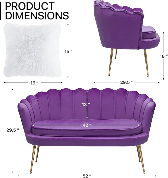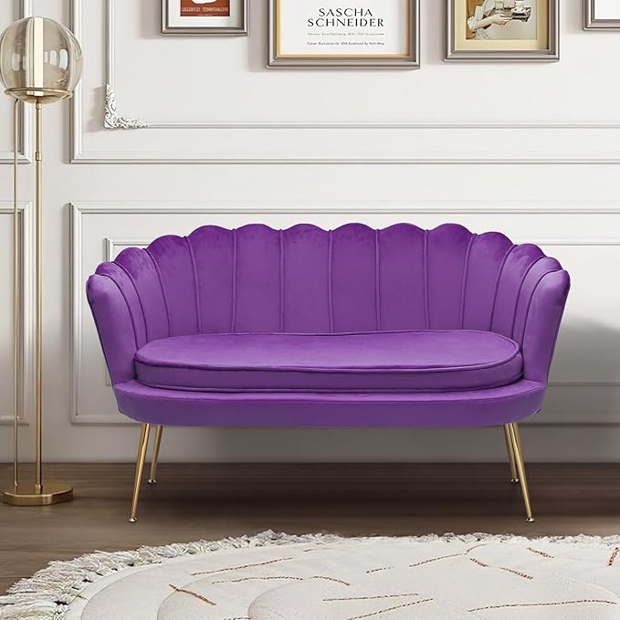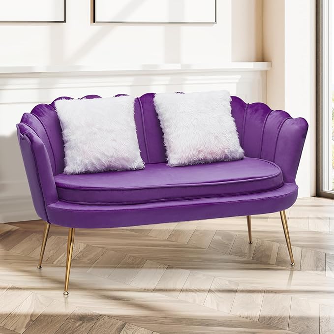MoNiBloom 52" Purple Velvet Loveseat Sofa with 2 Pillows, Modern 2-Seater Sofa Upholstered Tufted Love Seat Couch with Golden Metal Legs for Living Room Conference Room, 300 Lbs Capacity