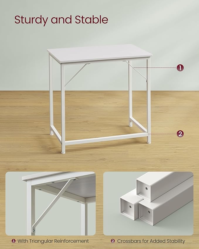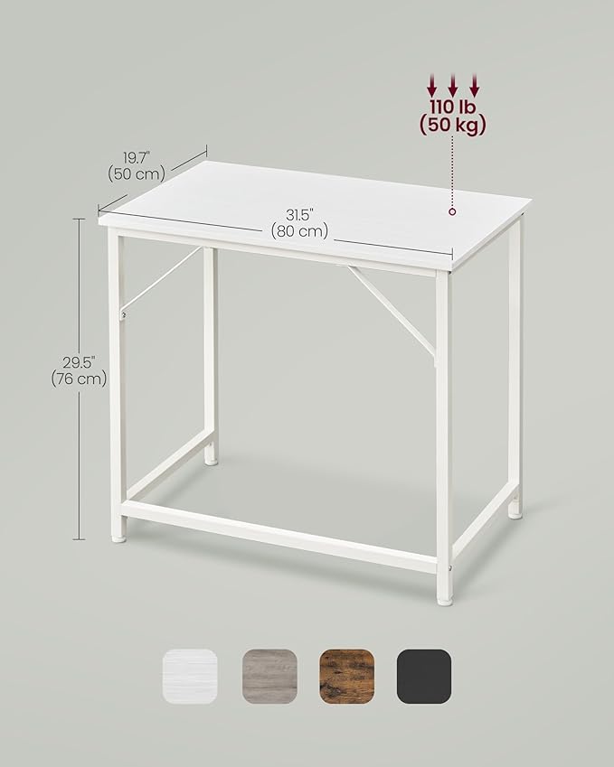 VASAGLE Computer Desk, Gaming Desk, Home Office Desk, for Small Spaces, 19.7 x 31.5 x 29.5 Inches, Modern Style, Metal Frame, Maple White ULWD038W44